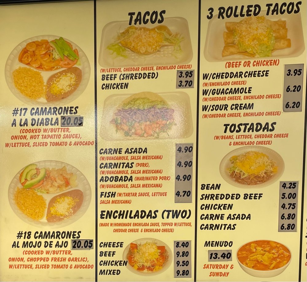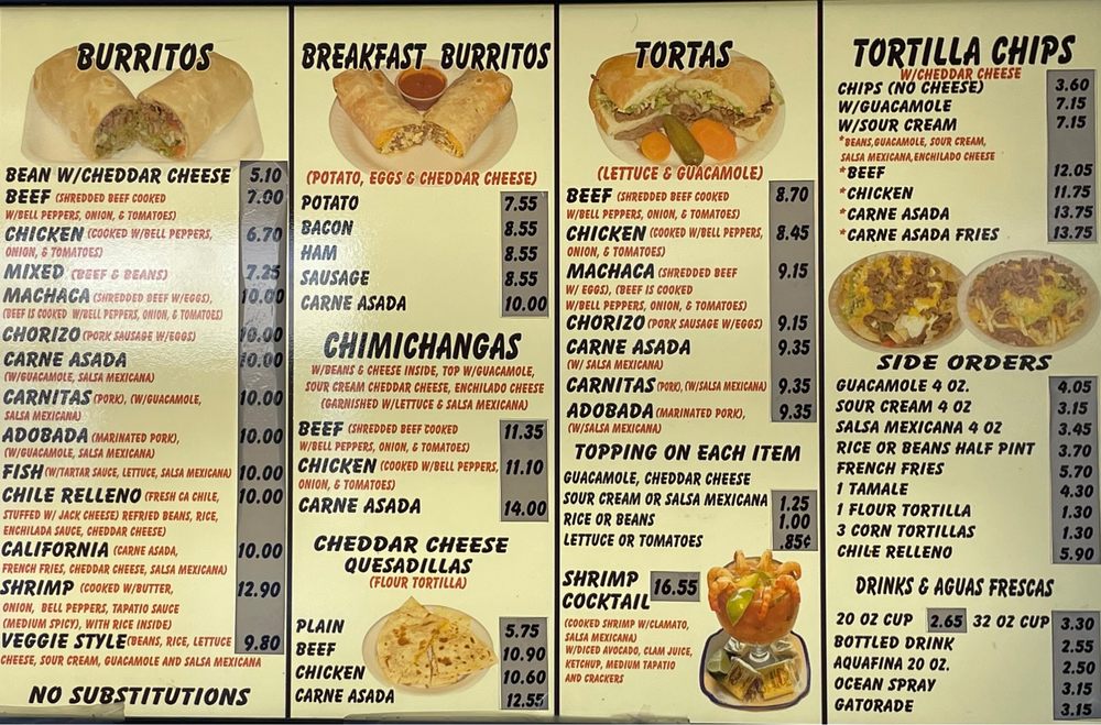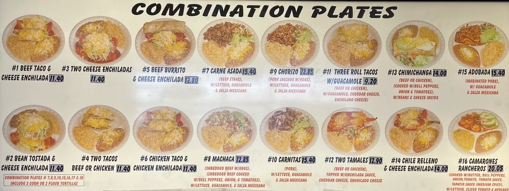 The menu is extensive, featuring tantalizing burritos such as Chorizo and California, each crafted to satisfy every palate. The combo plates are a highlight, with options like Cheese Enchiladas and Chimichangas, catering to those who crave variety and abundance.